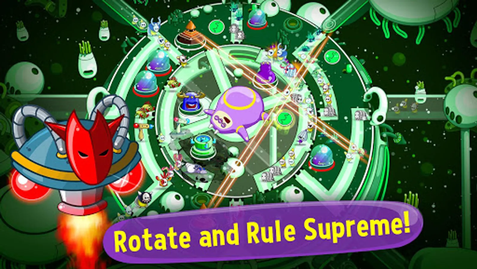 Build and place powerful turrets to attack invading enemies. Then rotate the battlefield to force foes down your preferred path of destruction. Be careful though, there are always multiple routes to control!
