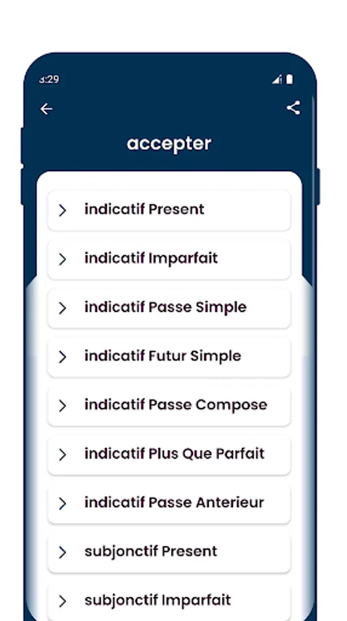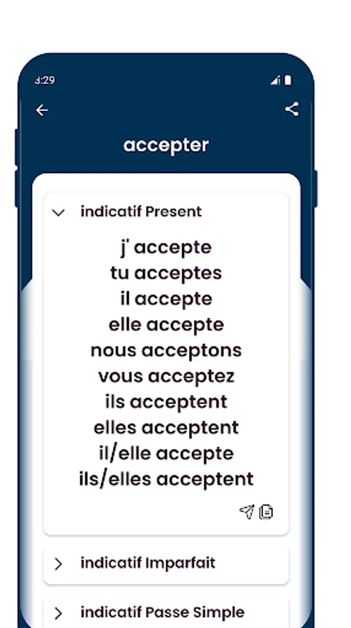 In this application you will find the verb conjugation 1st group and 2nd group, the indicative mood.