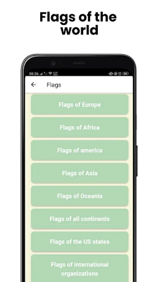 or you can choose to play all the available countries. you can also play the USA states maps, flags, state cities capital. there is also available the flags of international organizations such as United Nations, European Union, NATO, …etc