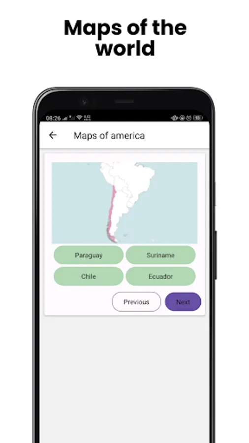 you will get a flag, map, coat of arms and you will guess the country name from 4 options. or you will get the country name and you have to guess the flag, map, coat of arms from 4 options.