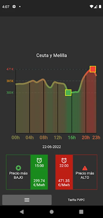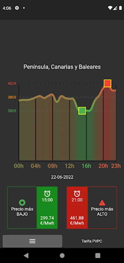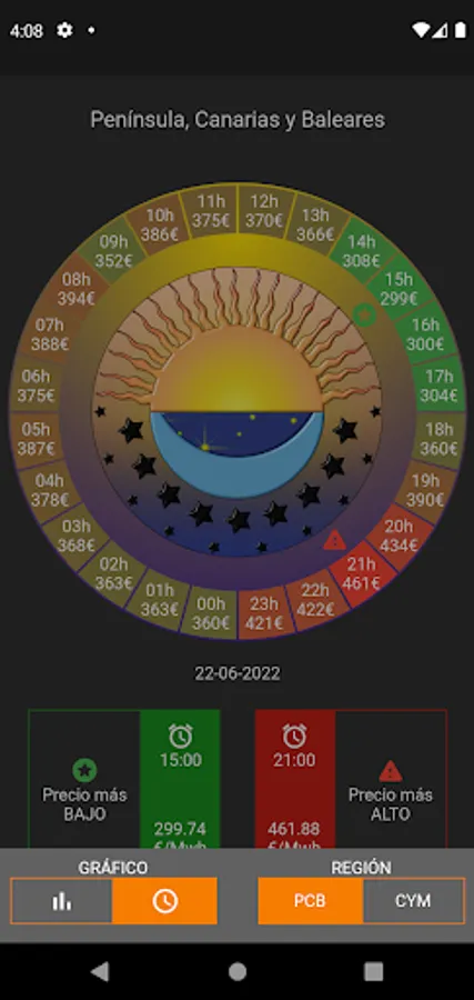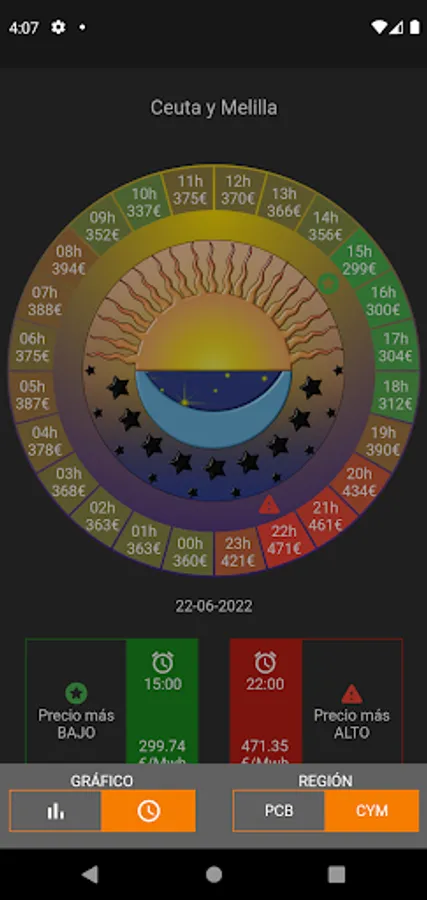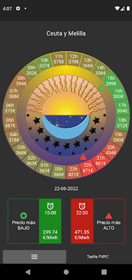At a quick glance you can know which hours are the cheapest.