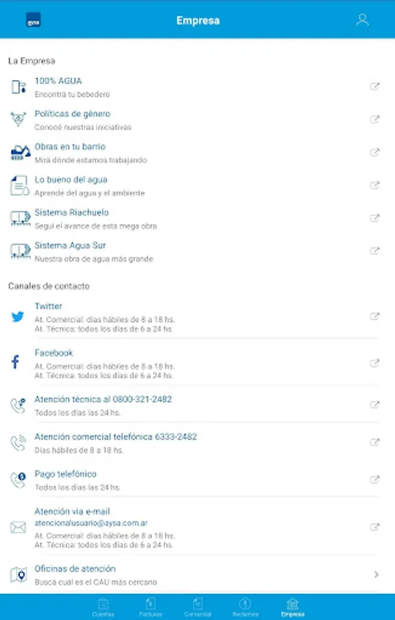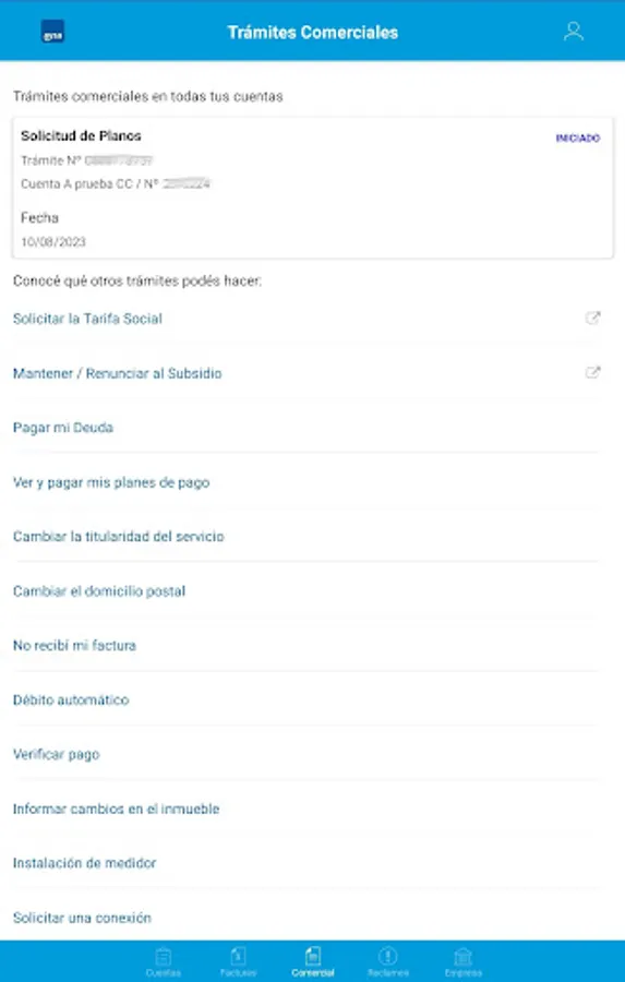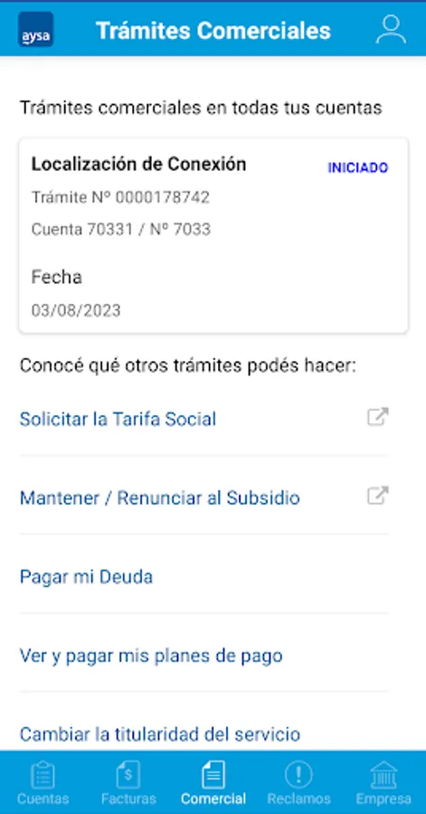 Manage your accounts: know your balance, download your latest invoices and pay them from here. Follow up on your commercial procedures and request shifts for personalized attention in branches.