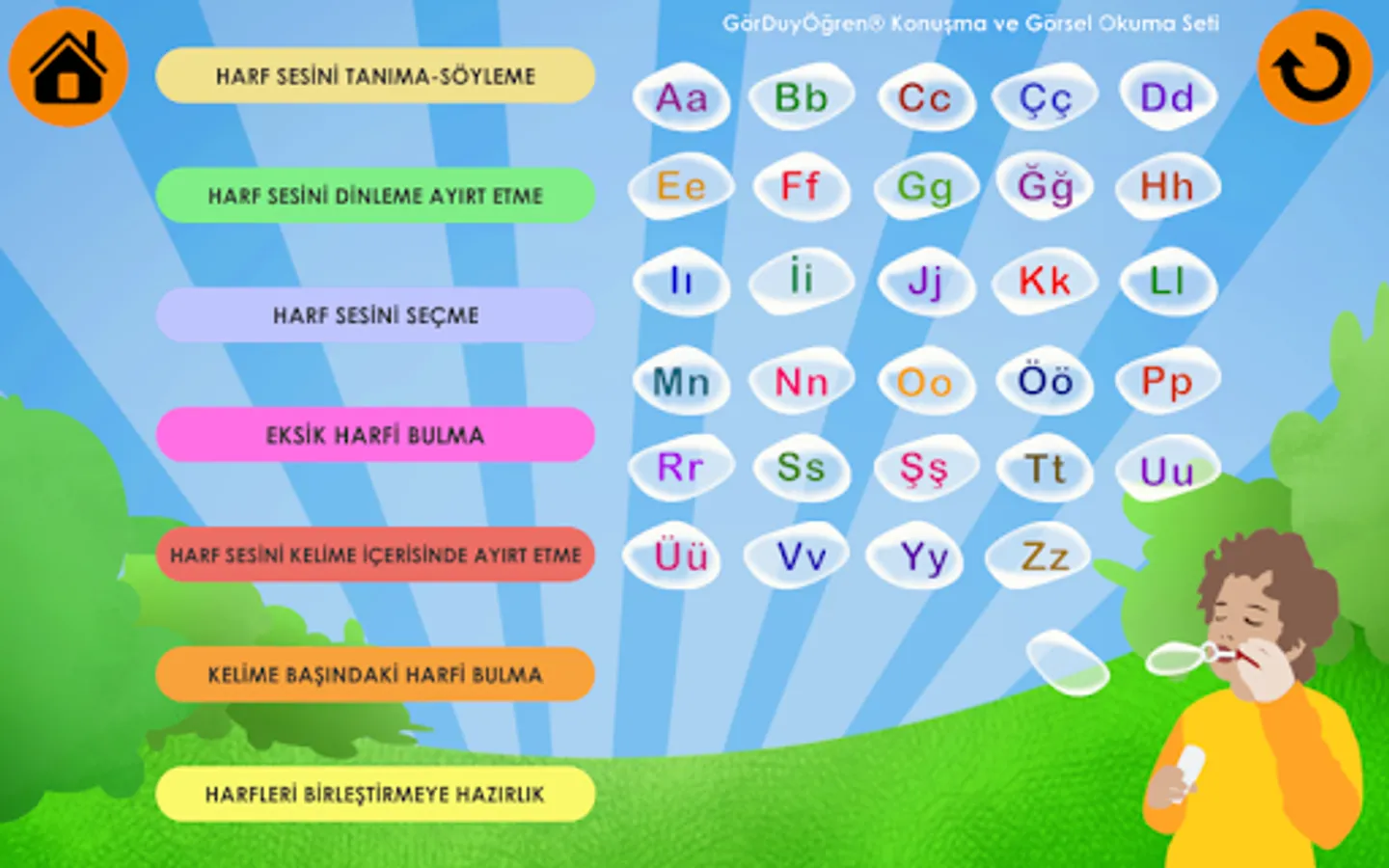 The GorDuyOgren® Turkish for Beginners is designed by an expert, Aysegul Turan®, for children aged 2 to 6. It enhances children’s phonological awareness and reading experience through real photographs and leveled games. Turkish letters and VC, CVC, CVCV, and CVCVC blends are covered.