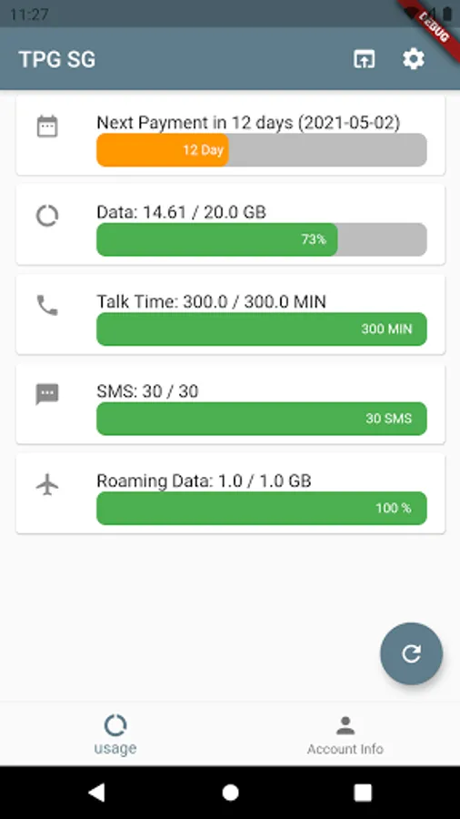 - simple ui showing data/sms/call usage.