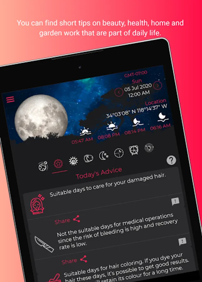 🌕 Today's advice: you can find short tips on beauty, health, home and garden work that are part of daily life. You can receive notifications about topics that interest you.