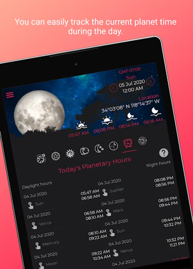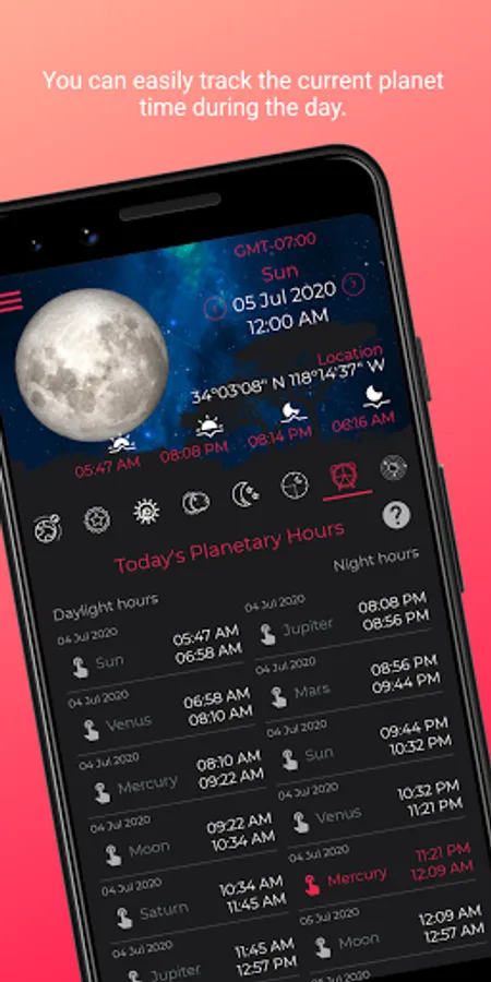 🌕 Today's Planetary Hours: You can easily track the current planet time during the day.