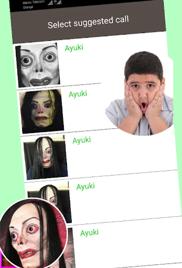 Welcome in the most frightening ayuwoki hehe ghost games,If you want to get a prank call from ayuwoki with a few fake caller ids here and there, we have a surprise for you! ayuwoki calling is the solution with a call timer for Android.