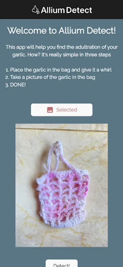 This application helps users find adulteration in garlic when used in combination with the bio-chemical thread based device prepared at Manipal Institute of Technology, India