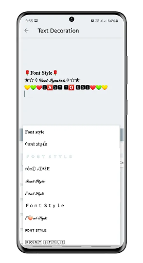★ A Font Style is a free android application to generate stylish texts. The application converts your normal texts to the stylish texts by ASCII characters in various beautifully patterns.