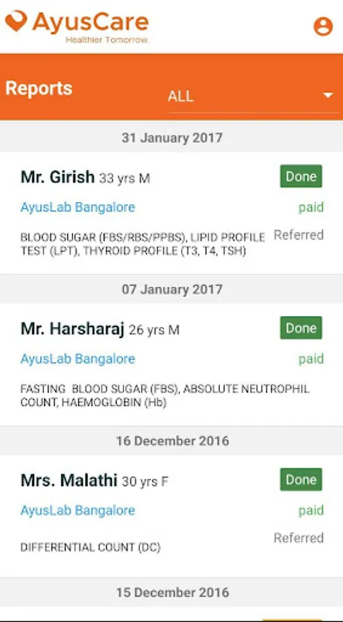 Keep all your diagnostic reports in one place across laboratories in AyusLab network.