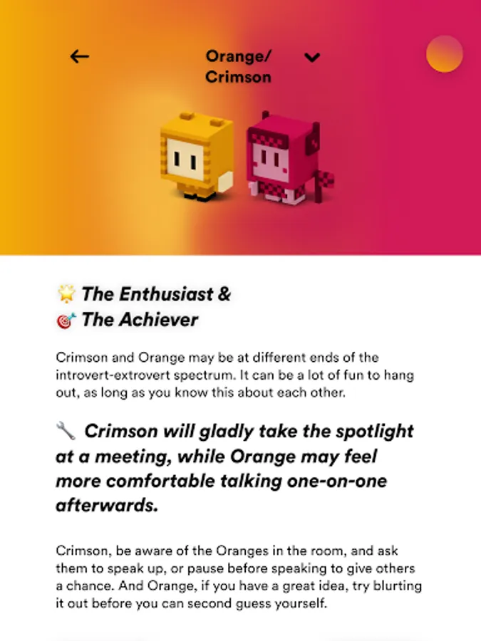 myCOLOR is a quiz that determines your personality type and how you can improve your work and social interactions with others.