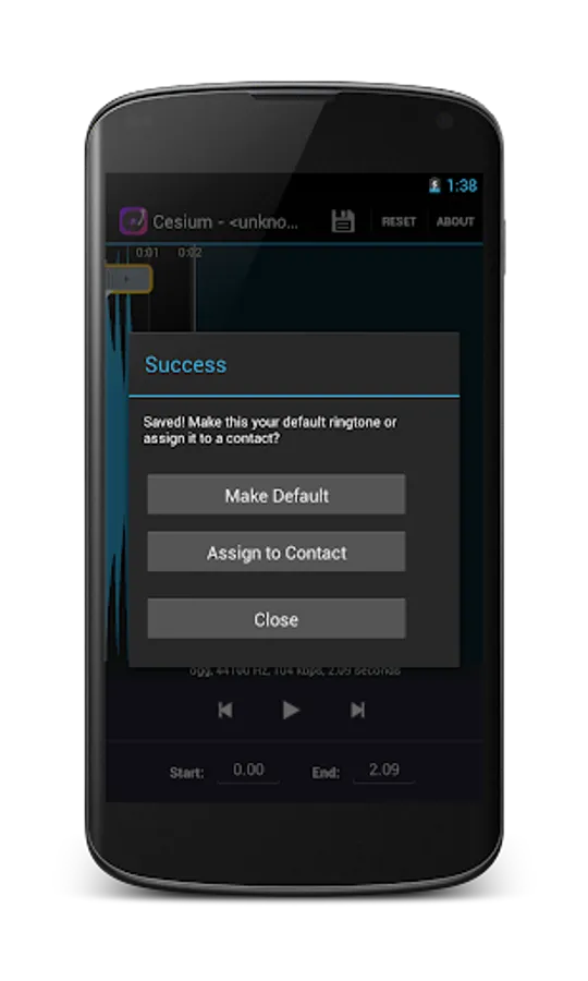 Cut the best part of your audio song and save it as your Ringtone/Alarm/Music File/Notification Tone.