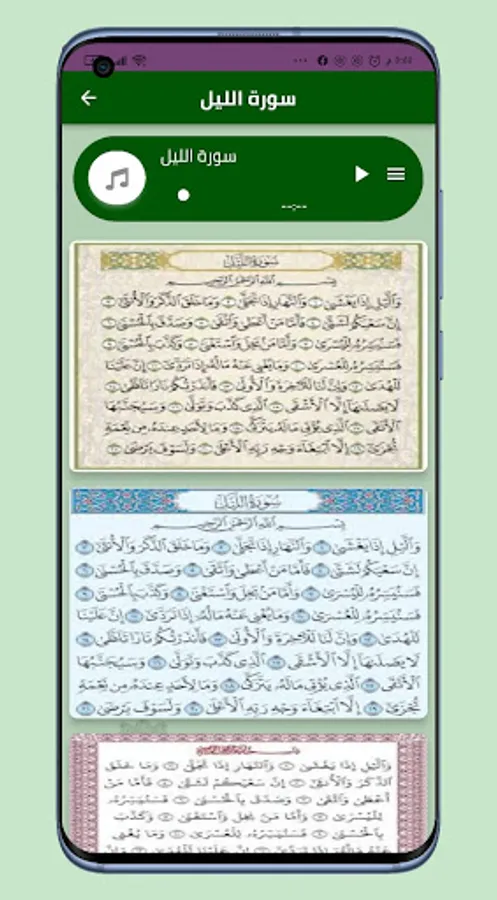Its interface is comfortable for the eye in the application of Surat Al-Layl, written and audible