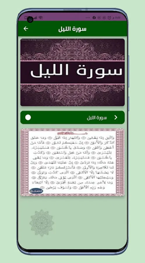Work without the Internet in the application of Surat Al-Layl, written and audible