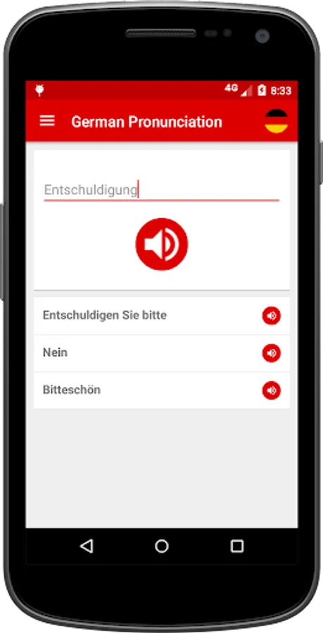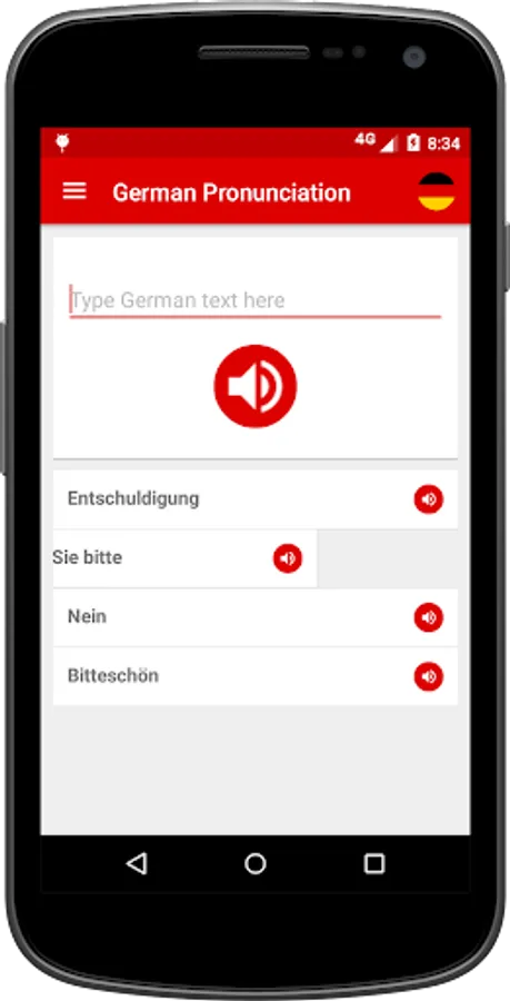 Just use this app anytime you're confused about the right pronunciation of a word. It is very useful to all, students, tourists, teachers, workers, etc. who may need to check the pronunciation of a word on the go. It is a simple app to help you learn and speak German the right way.