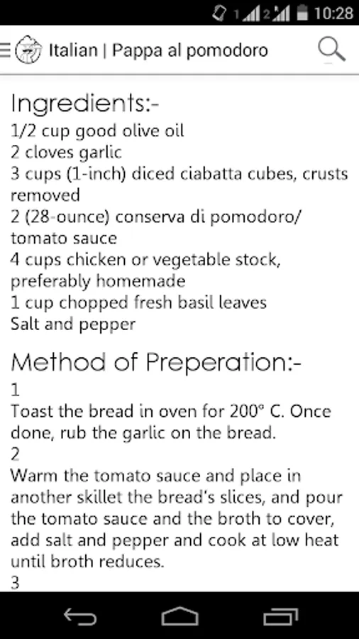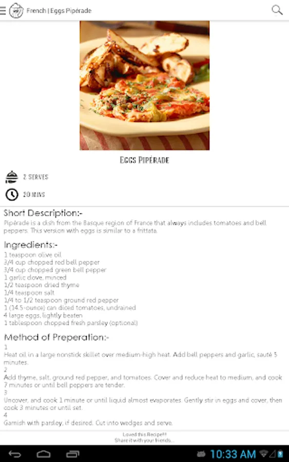 The cuisines are categorized and gives a brief cooking directions to the user.