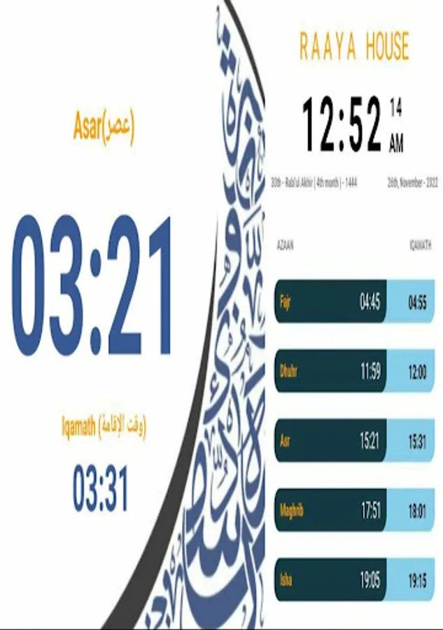 Azan Clock is a super flexible Tool with a modern display that shows iqamath countdown after azan is called..