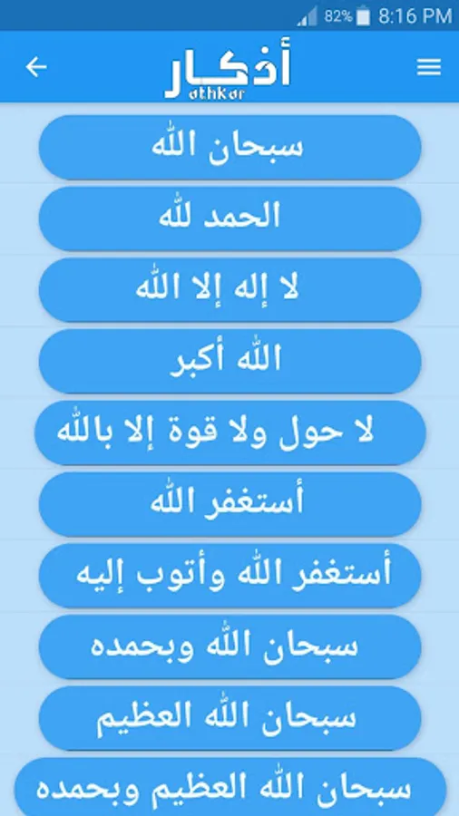 Application helps in the multiplication of God contains some of the selected Azkar such as Hallelujah, praise be to God, there is no god but Allah and God is the greatest and no power except God and ask forgiveness of God and I repent to him and Hallelujah and praise and praise God Almighty