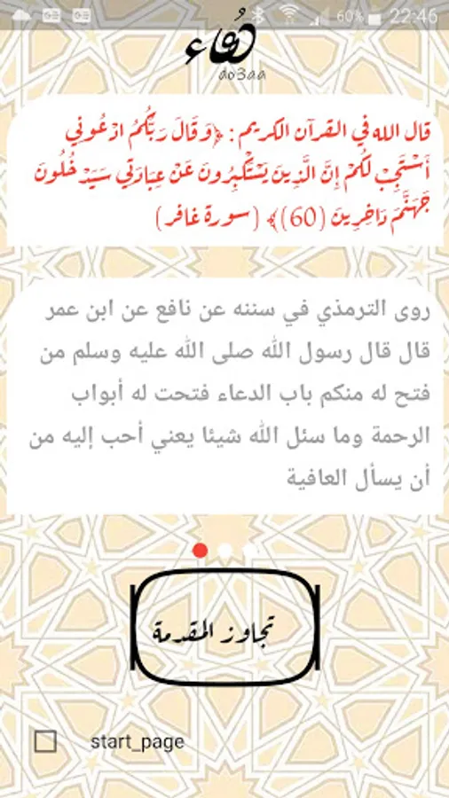 Worship of supplication was the start in the application of supplication, as it contains supplications divided into five basic tabs, namely - a general supplication - a supplication from the Book of God, the Noble Qur’an - the supplication of the prophets as in the Book of God the Noble Qur’an - the supplication of the Prophet, peace be upon him - the supplication of the Holy Qur’an sealing - supplications For the dead
