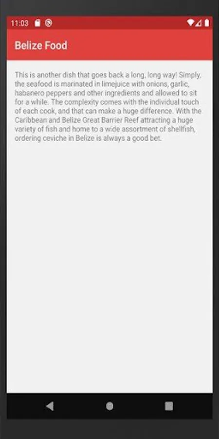Belize is a nation of Central America. There is available different types of traditional food. This app mention this traditional food with there taste how they were made etc
