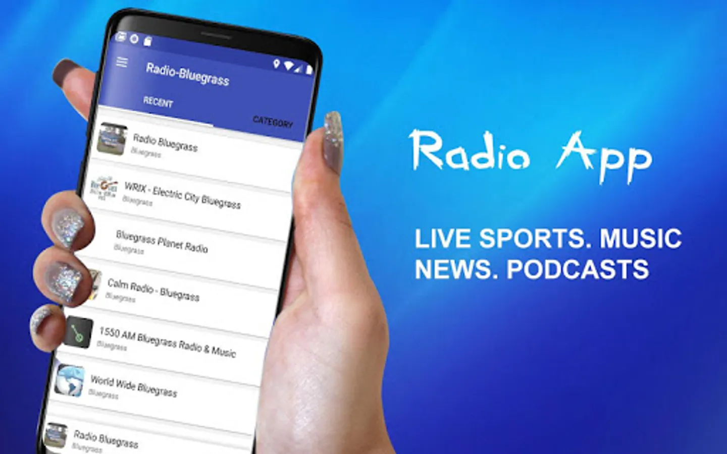 Bluegrass Radio App includes top of Radio Stations with Bluegrass Music