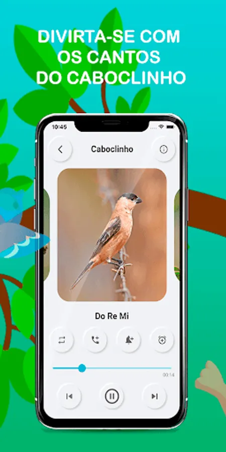 And still have fun with your whole family listening to the different sounds of caboclinho. In addition, you can even attract other birds close to you when using the app, as the caboclinho is attracted to the sounds of other specimens of its species.