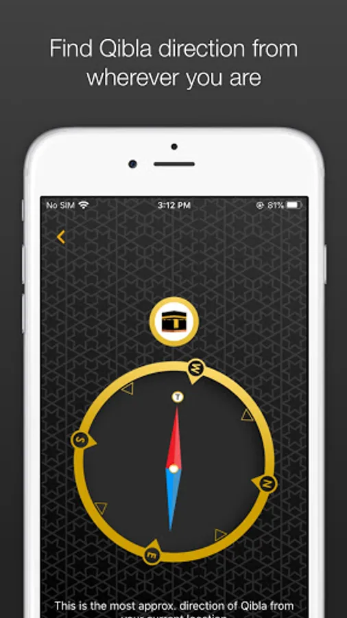 Now you can use this application to find the direction of Qibla from anywhere in the world. Just hold the phone horizontally in your hands and keep rotating until the Qibla icon is lit up in full. That would be the most approximate direction to Qibla from any location. Since this depends upon the magnetic poles and hardware of the phone, we suggest that you perform this away from other electronic devices for efficient performance.