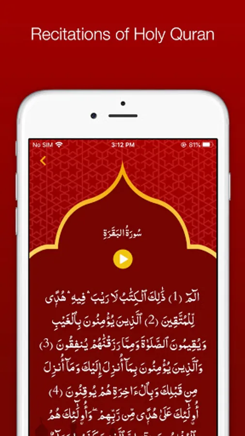 There are multiple recitations of Holy Quran available in this application. If you prefer to listen to a certain voice, you can choose so and proceed to hear the recitation.