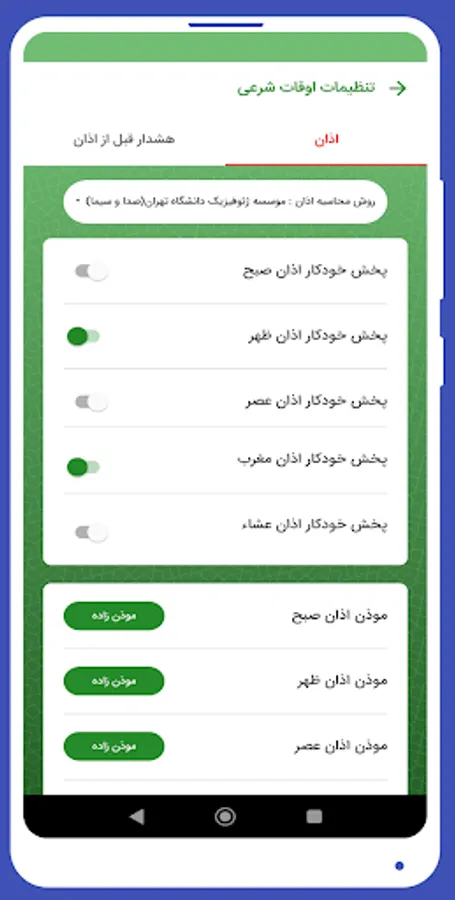 • Adhan/PreAdhan Reminders with Islamic audio.