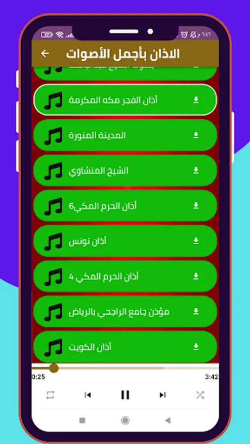 Azan , one of the most beautiful and pleasant sounds, may be heard all over the world. The sounds of Azan can be heard in Mecca, Medina, Dubai, Moscow, Turkey, Turkmenistan, Uzbekistan, Kazakhstan, Kyrgyzstan, Jerusalem, Iran, and Chechnya with this application. Azan is, in fact, appeasement.