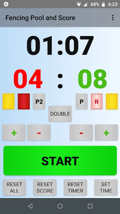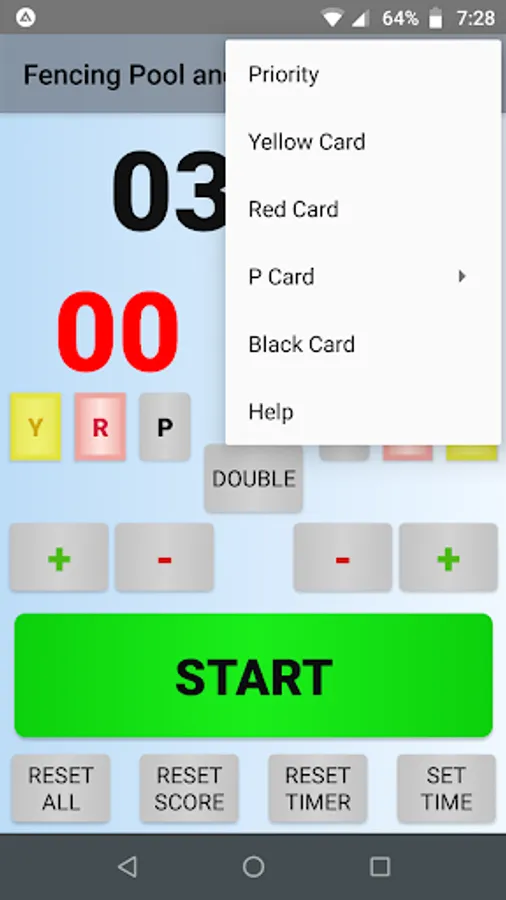 This app also functions as a standard scorekeeper, so you can use it for direct eliminations and club bouting too. It keeps tracks of score, cards, time, and priority. One can also display cards and priority through a dropdown menu at the top right corner of the app. This app also removes many inconveniences encountered in previous scorekeeping apps, such as allowing one to set the time to anything by using the Set Time button, rather than having to set them to fixed amounts.