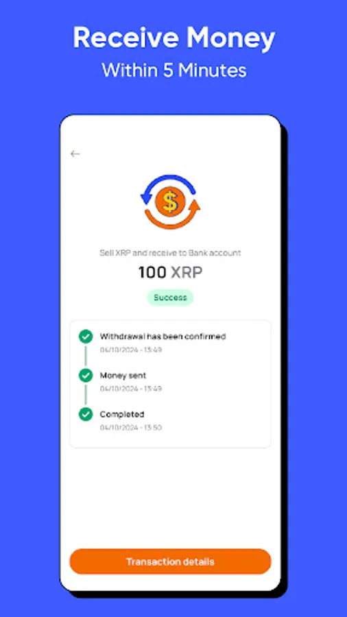 - Fast Crypto-to-Bank Transfers - Convert and withdraw in just 5 minutes, directly to your bank account.