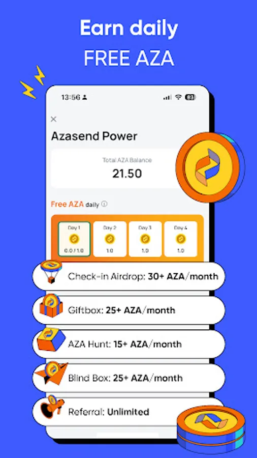 - Azasend Power (AZA): A utility digital asset earned through activity, used for transaction fees, profit-sharing, and unlocking exclusive benefits across the platform. Backed by real growth—not speculation.