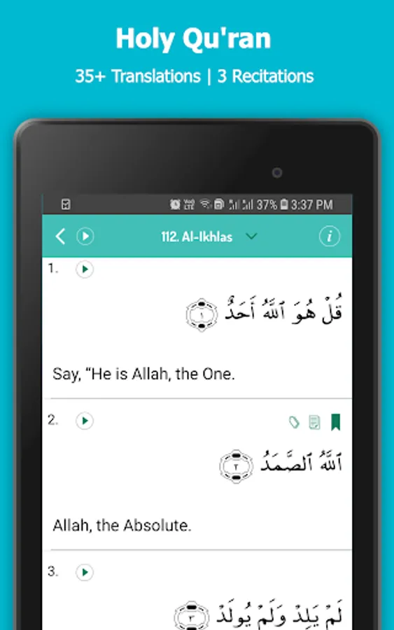 • Quran :- in Arabic, 40 Translations, Search, Nightmode and more