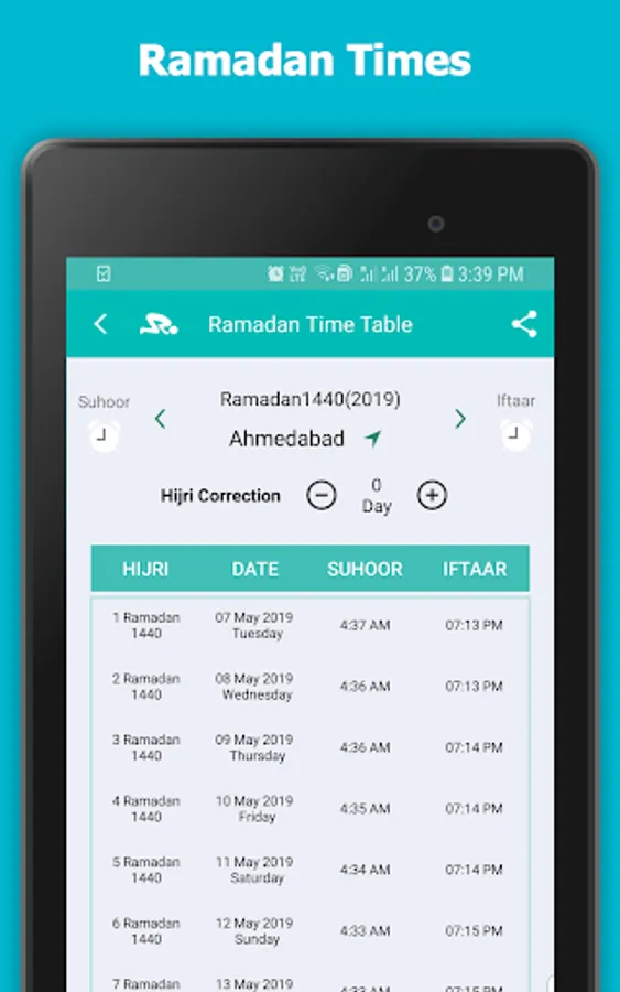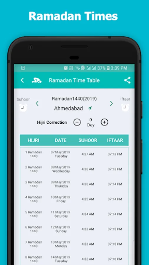 • Islamic Calendar :- shows you Hijri Dates, Events, Moon Phases