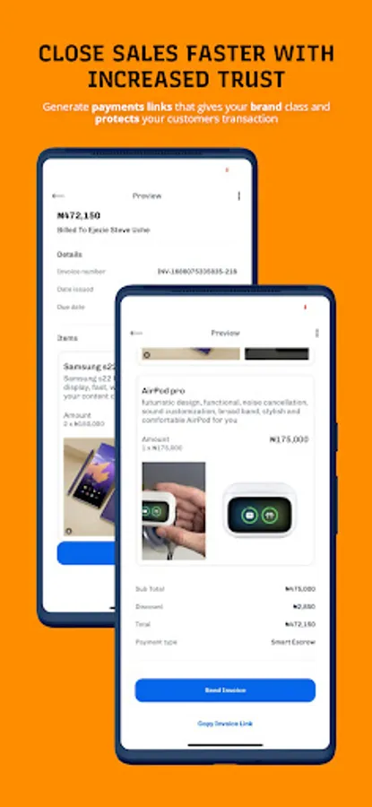 AZCPAY is an escrow application that helps online businesses create customizable invoice links to collect payments from customers securely,