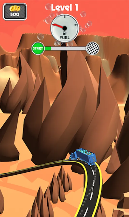 On the way, use the downhills to give less gas to get to the destination before the fuel runs out, and get money.