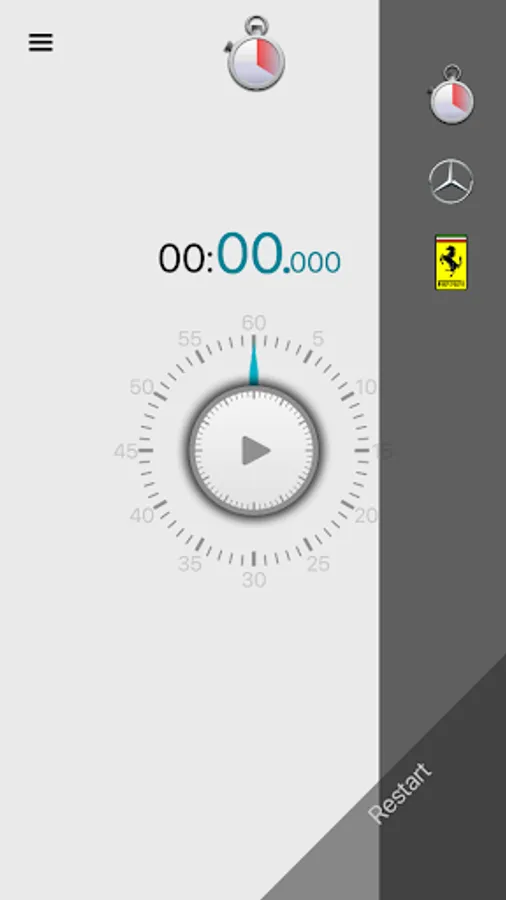 Start and stop the stopwatch pressing the button on the center of the screen, you can see the elapsed time on the top digital display and on the analog view like and old school stopwatch.
