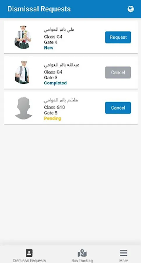 This application offers a service for students’ parents to follow their sons and daughters during their transportation by school transport buses and to ensure their safety. In addition to use a dismissal request during the official school hours, because the school’s administration is keen to provide the utmost safety and security for its students while they are inside the school yard or school transport buses.