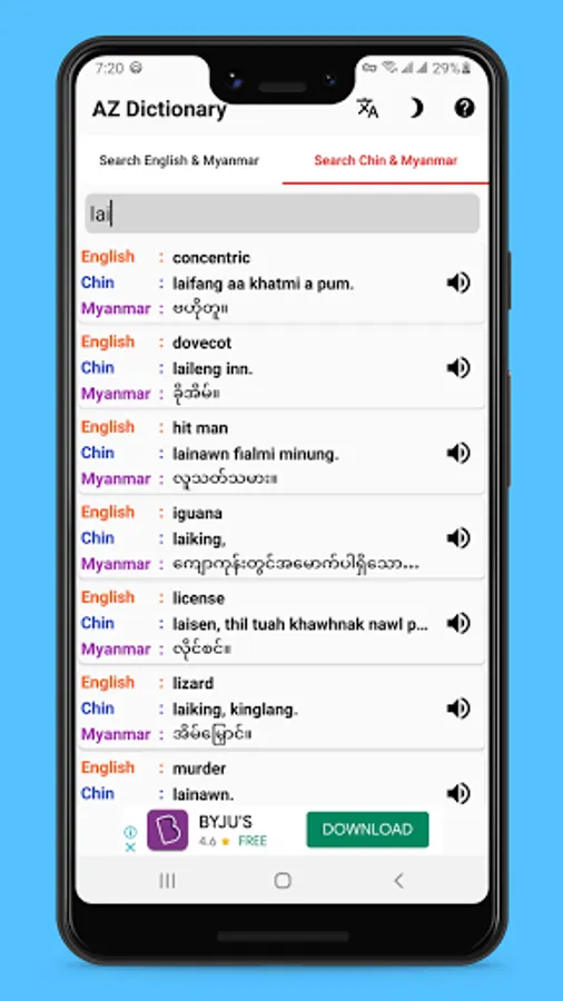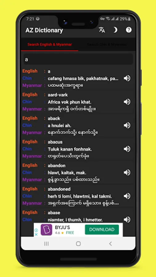 English To Myanmar , Myanmar To English / English To Chin/Myanmar , Chin To English/Myanmar Offline Dictionary