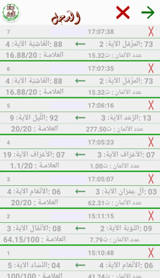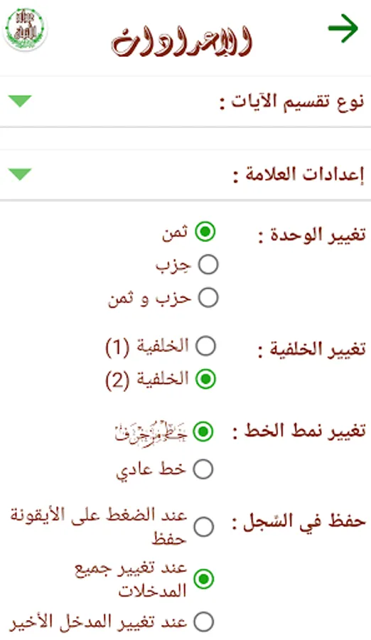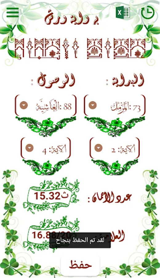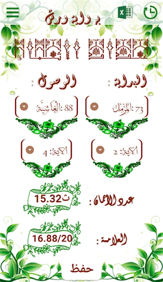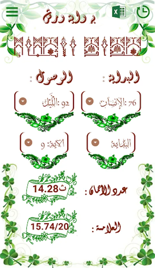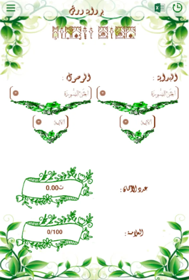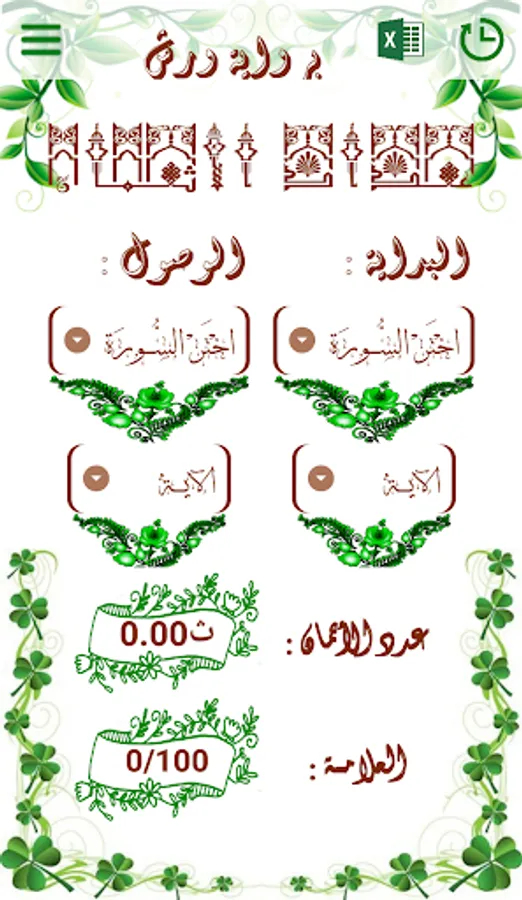 The price counter application calculates the achievement, i.e. the parties, prices and parts in the Holy Qur’an with a narration of workshops with extreme accuracy, after the letters memorized in each term for each price. The program also allows the calculation of the mark at the same time, after determining the share to be memorized and the percentage of the mark from Settings.