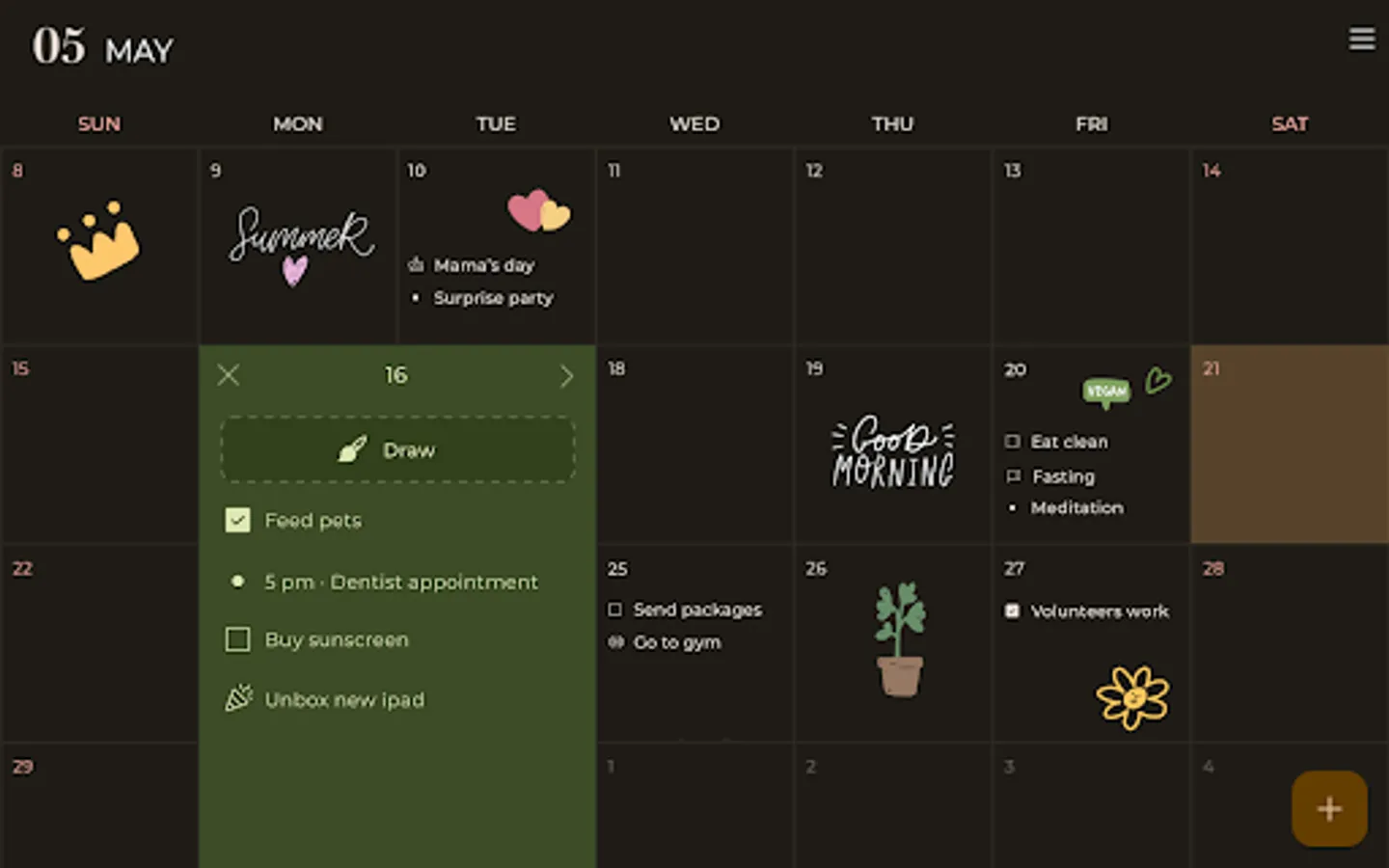 ✔ Enjoy quick access to your daily to-do list on monthly calendar.
