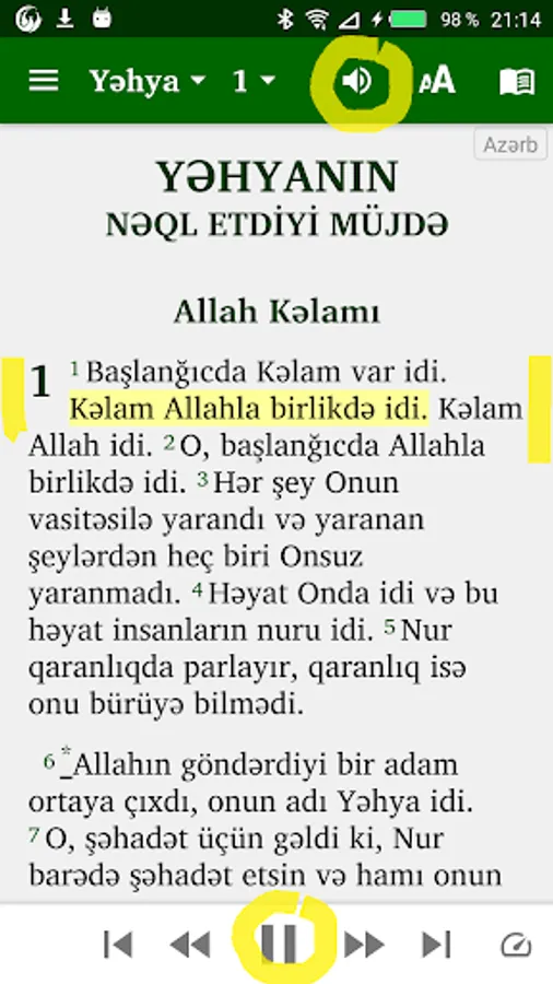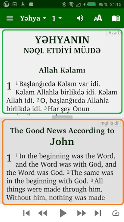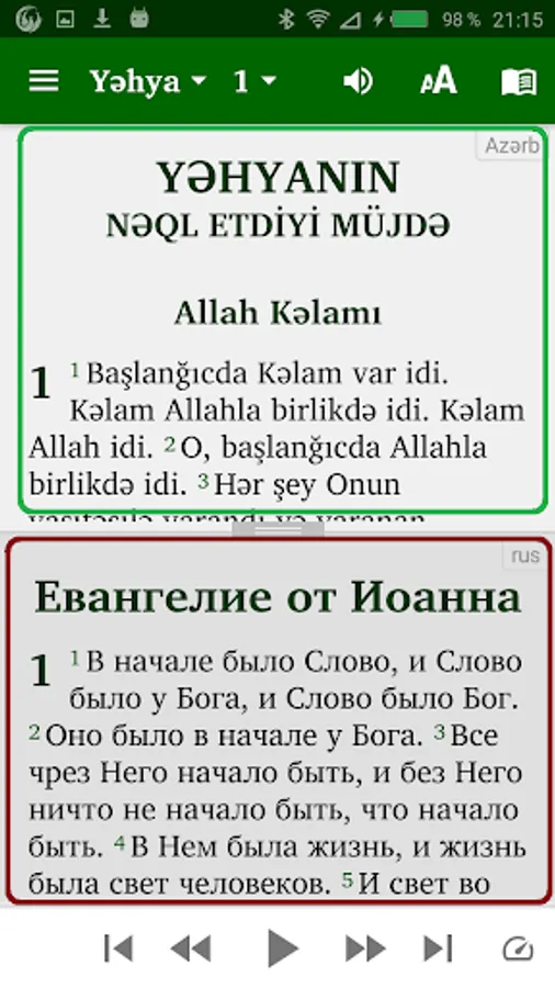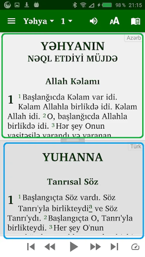 The Word of God in Azerbaijani, with audio for the New Testament.