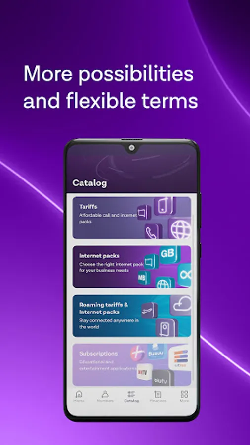 - With just one touch, adjust internet, roaming packages, and subscriptions, activate or deactivate communication, international, and roaming lines, and check tariff balance and payment history.