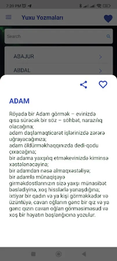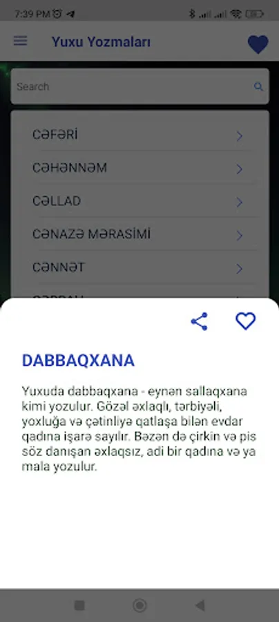 Əgər siz də yuxularınızın sizə verməyə çalışdığı mesajlara maraq duymuşsanız, Yuxu təfsirini endirin və bədəninizin altındakı sirrli dünyanın açıqlamasını verməyə başlayın. Tətbiqi qiymətləndirib rəy bildirməyi və onu dostlarınızla bölüşməyi unutmayın!