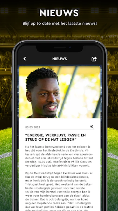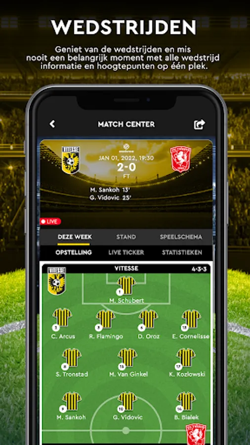 Experience the ultimate Vitesse experience with the official app! Stay informed of the latest news, follow live matches and buy tickets for the most exciting duels.