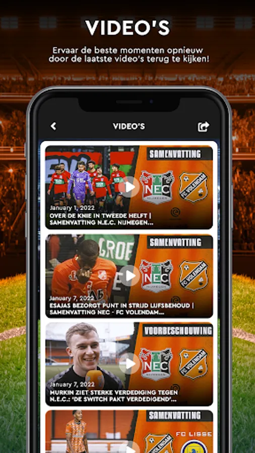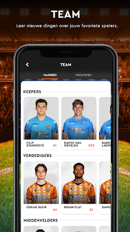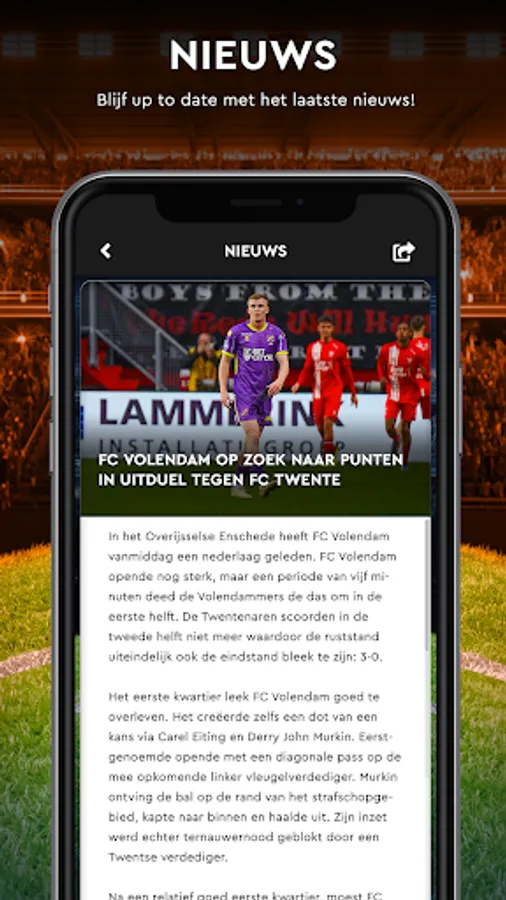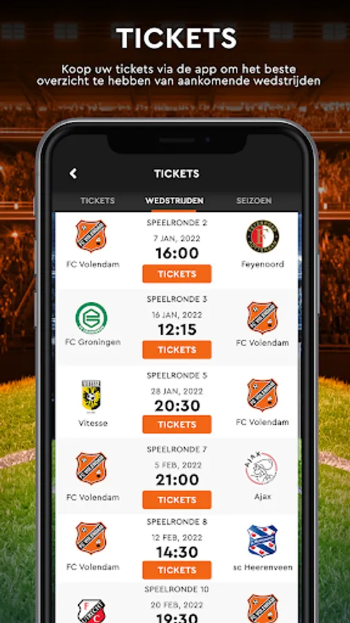 Log in with your My FC Volendam details to predict the result and choose the Man of the Match. Or simply order tickets or fan items in the app.