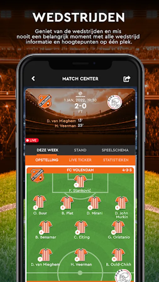 Not at the stadium? Follow the match live and receive the lineups, goals and other match statistics live in the app!