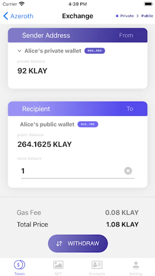 Send NFT (ERC-721) and Token (Klaytn) anonymously with Azeroth
