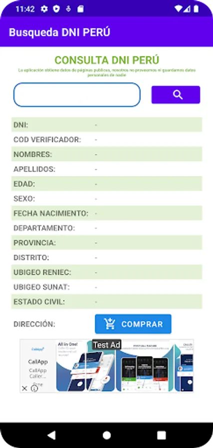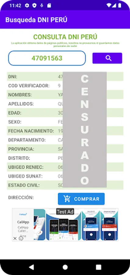 A simple application to consult data of the person through the DNI, shows relevant data such as date of birth, age, etc.